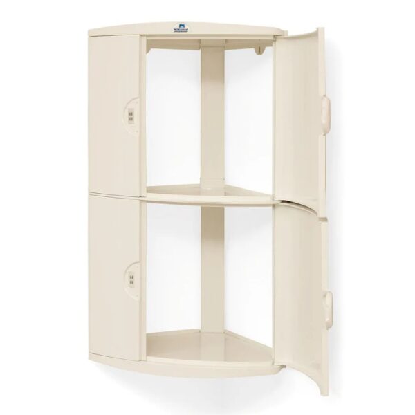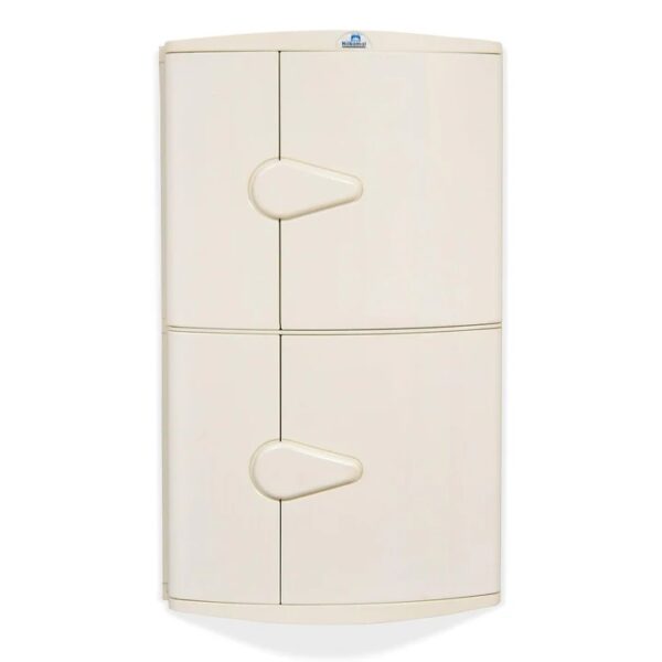 Need a modern cabinet to neatly store essentials in a corner? The thoughtfully designed Nilkamal 2-Door Corner Cabinet is for you. Its sturdy plastic construction in a clean, curved design fits into the corners of bathrooms, dressing rooms, and office spaces. With a two-tiered door cabinet, you get enough space to keep essentials handy while keeping your room looking nice. If your room requires an attractive corner cabinet, this is it.