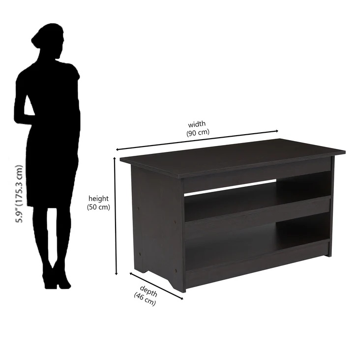Alter the vibe of your living room by adding the Aspen Coffee Table. This eye-catching piece by Nilkamal has a modern design in an attractive new wenge shade that enhances your space’s opulence. It features a large tabletop for displaying your favourite decorative pieces and two open shelves beneath for storing books and magazines. Imagine how stylish the interior of your home or office will be with the Aspen Coffee Table. It is constructed from a pre-laminated particle board for strength with a resistive melamine finish and anti-fungal properties. The sleek and stylish design of the Aspen Coffee Table brings chic flair to your home, elevating your coffee time experience.