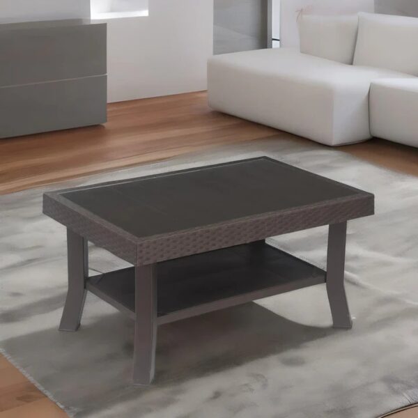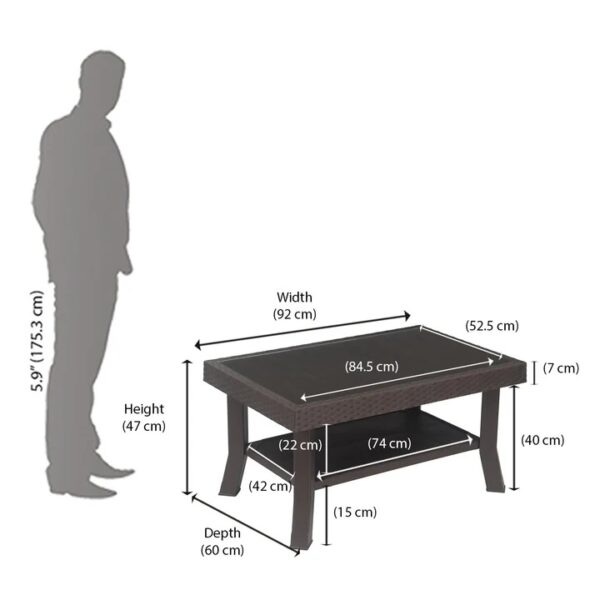Elevate your living room and office reception with the modern Nilkamal Centre Table 1. The robust plastic construction of this contemporary centre table with cane design and glass top effortlessly enhances the beauty of homes and office spaces. Decorate its surface with beautiful flower vases, and store books and magazines on the shelf below for guests. If you want a modern centre table for your home, order this table today.