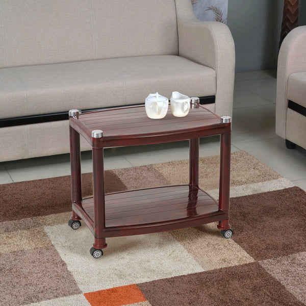 Elevate your living room and office reception with the modern Table 2 Centre Table. Robust plastic construction in a contemporary design on the Table 2 centre table effortlessly enhances the beauty of your space. Decorate its surface with beautiful flower vases, and store books and magazines on the shelf below for guests. Smooth gliding wheels help you move the table swiftly. So why wait? Get one for your home today.