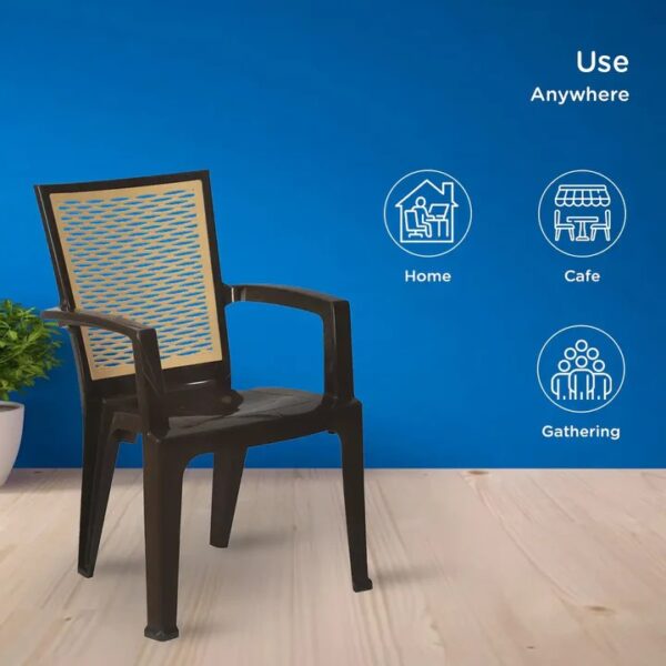 Unwind on the comforting ergonomics and supportive armrests of the CHR2226 Plastic armchair. With durable plastic construction in a dual-tone colour and a glossy finish, this chair lasts for years while maintaining its appeal. The 125-kg weight-bearing capacity ensures a secure and sturdy sitting experience. Because of its sturdy construction and charming aesthetics, the CHR2226 Arm Chair is suitable for your living rooms, offices, and even gardens. Always have a relaxing seat available for you and your guests with the CHR2226 Plastic armchair.
