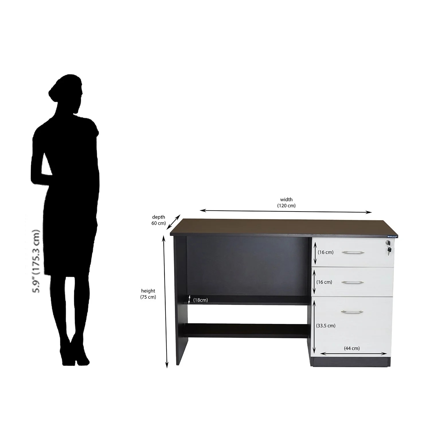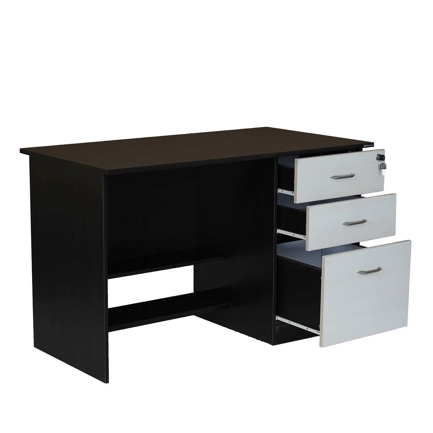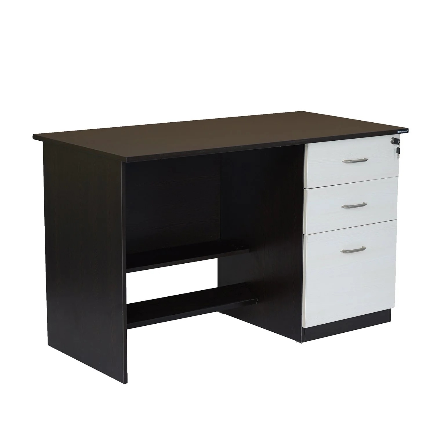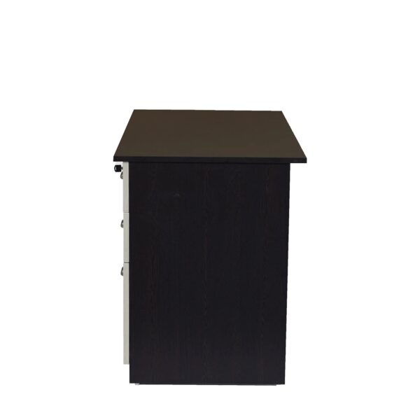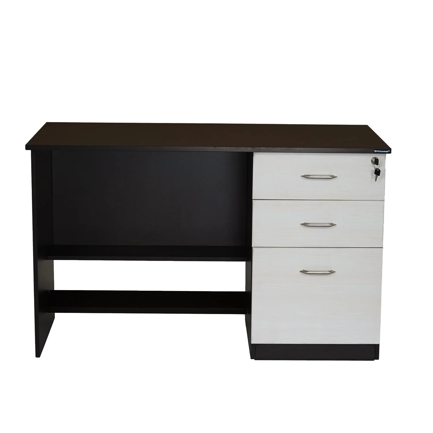 Maximize your workspace by adding the perfect combination of function and style with the Leonardo Office Table. This sleek and modern design piece by Nilkamal can be your ideal place to be productive and efficient. Its thick pre-laminated particle board foundation strengthens the structure, and the new wenge shade enhances your setup’s personality. You can keep your laptop and other office essential supplies on the roomy tabletop. Beneath the tabletop are 2 small and 1 large drawer to store your files and papers. These drawers have a central locking system, so when you lock the top drawer, all the drawers get locked to safeguard important documents and access them quickly. You can pair this table with any office chair and place it in your workspace to complete the setup. The perfect blend of style and functionality makes the Leonardo Office Table an excellent choice for any interior. If you want to upgrade your workspace with style, the Leonardo Office Table is the right choice