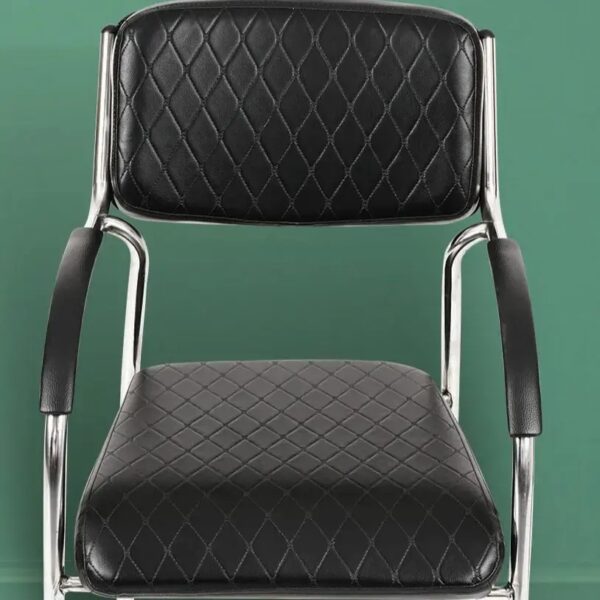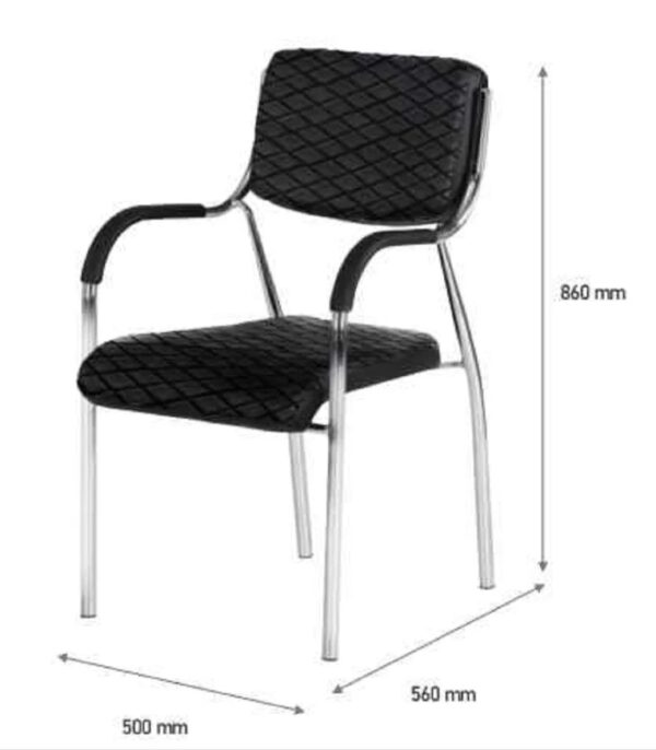 Stainless steel visitor chair with impressive weight bearing capacity.