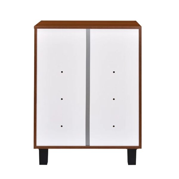 The Nilkamal Flow Shoe Cabinet offers ample storage space for more than 12 pairs of footwear. Its lockable shutter ensures the safety of your belongings, while durable metal handles provide a secure and comfortable grip. The 100 mm leg space makes cleaning underneath effortless. Made from engineered wood and featuring a stylish dual-colour finish, this shoe cabinet seamlessly blends functionality with modern design to enhance your home.