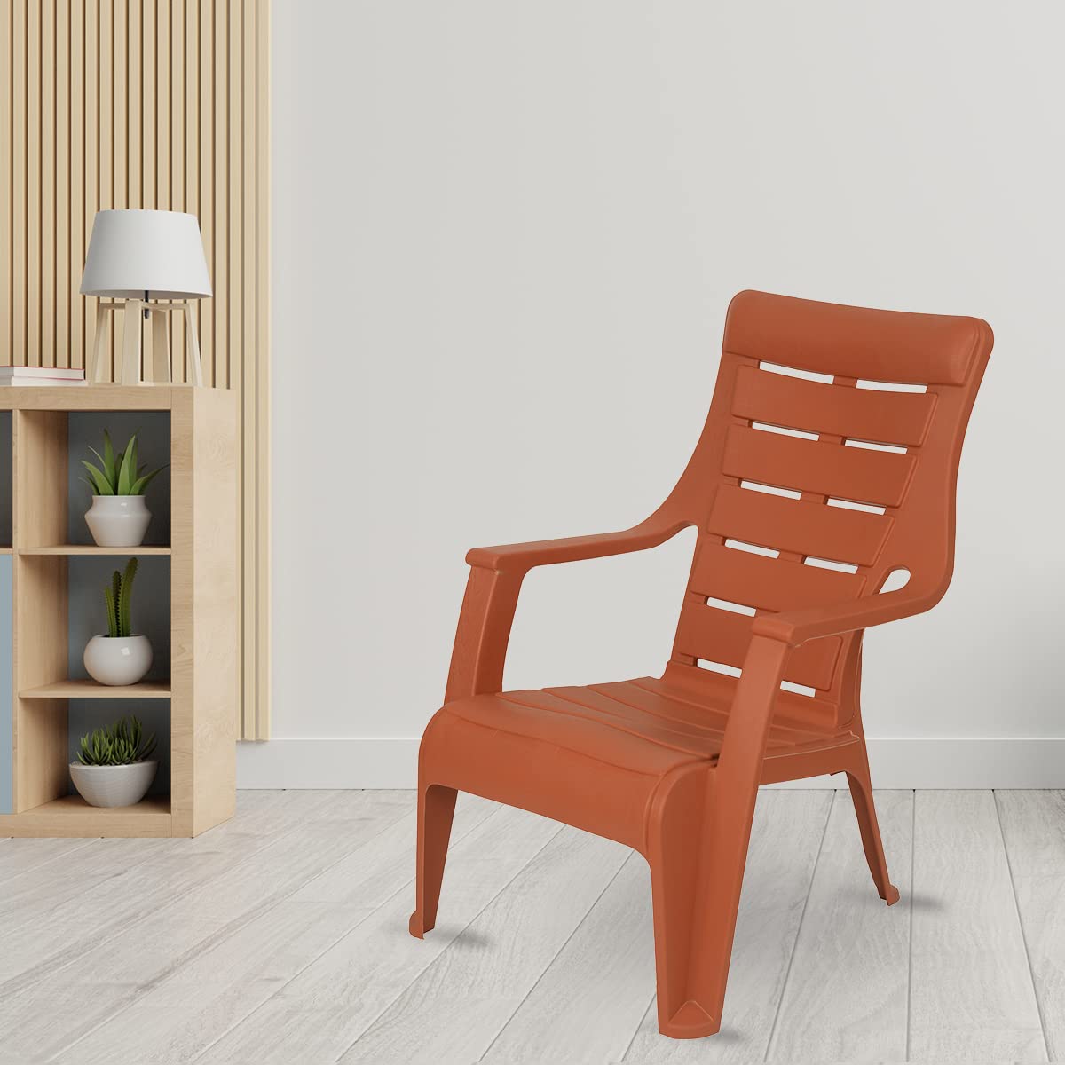 Would you like to relax in a reliable plastic chair with enhanced comfort and style? If you say yes, the Sunday Plastic Chair is right for you. With a solid matte-finished virgin plastic construction and ergonomic design, this stylish chair offers comfortable sitting for hours and lasts for years. The extended backrest and supportive armrests elevate your comfort, while a potent 125 kg holding capacity ensures secure sitting. Equip your living rooms and bedrooms with the stylish, lightweight Sundar Arm Chair.