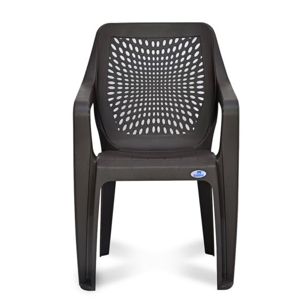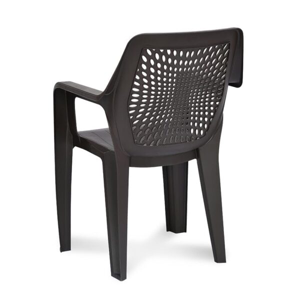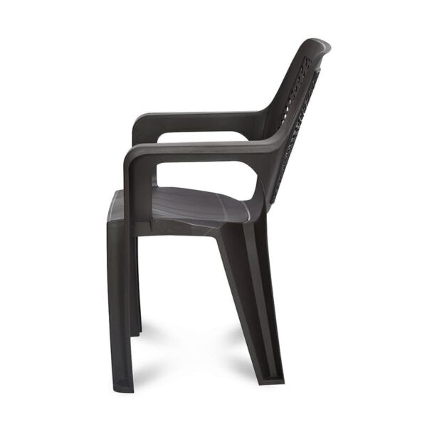 Unwind in the comfortable ergonomics and supportive armrests of the Trendy Arm Chair. With durable plastic construction and a matte finish, this chair lasts for years while maintaining its appealing sheen. A 3D mesh pattern on the backrest adds style. The 125-kg load capacity of the chair ensures secure and sturdy sitting. Because of its sturdy construction and charming aesthetics, the Trendy Arm Chair is suitable for living rooms, offices, and even gardens. Always have a relaxing seat available for you and your guests with the Trendy Arm Chair.